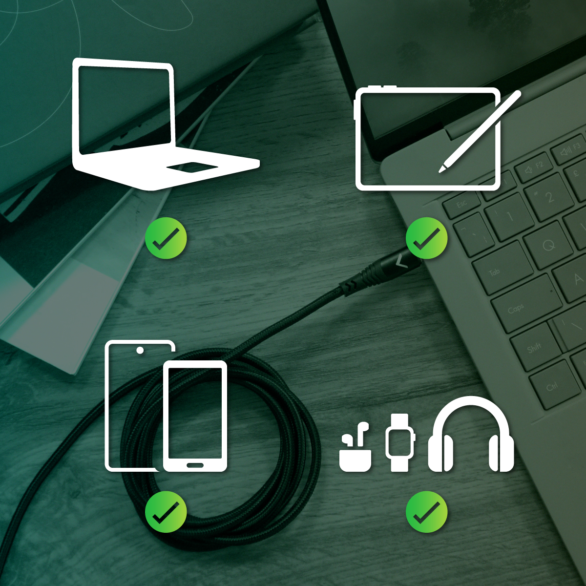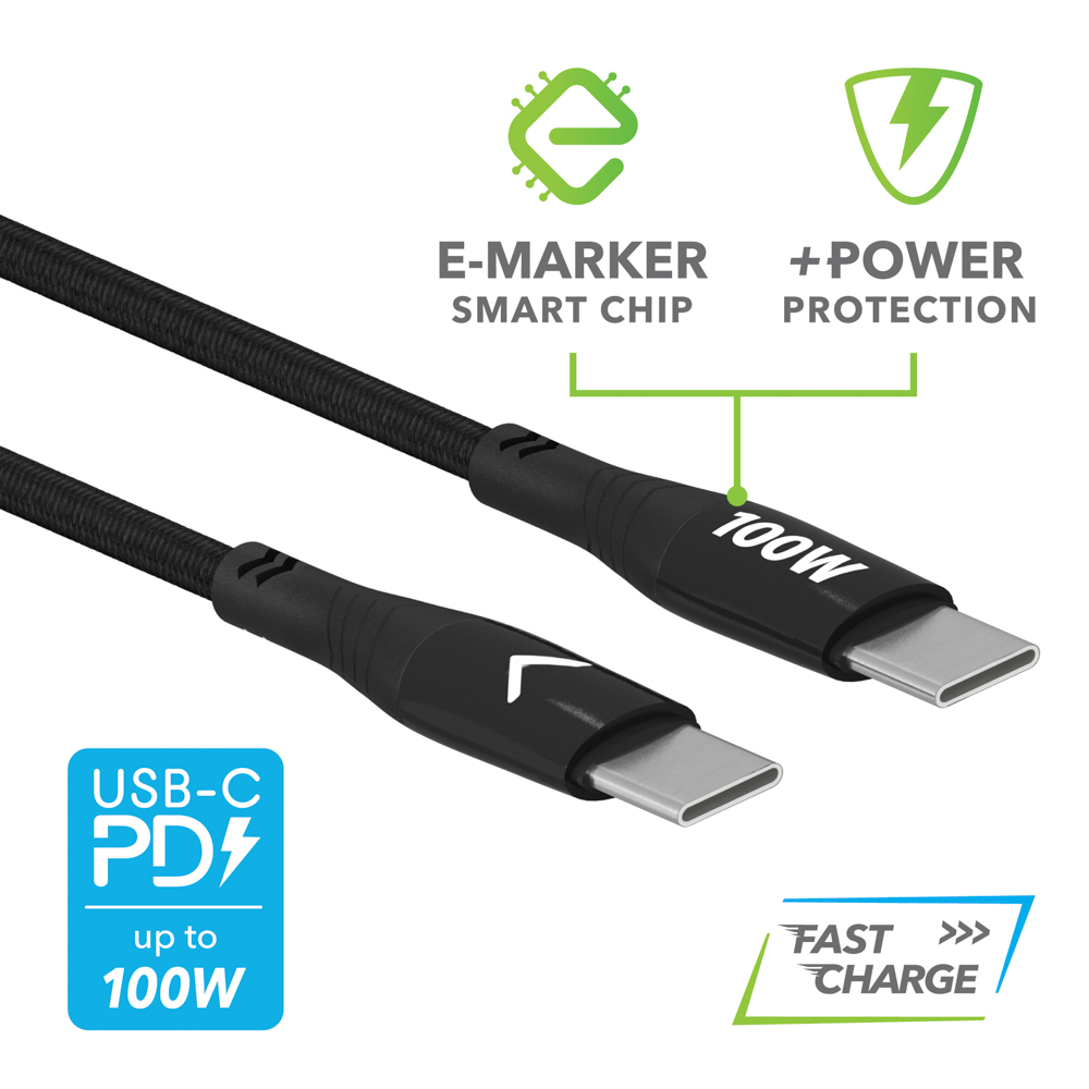 VCC2E enables SUPER-FAST charging at up to 100W speeds for Laptops, MacBooks, iPads, Tablets and other devices when paired with a Power Delivery (PD) compatible charger, and is fully compatible with all other USB-C devices. The E-Marker smart chip ensures that all devices are safely supplied with the correct power.